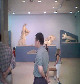 訪れたときには、たくさんの観光客でにぎわっていた。博物館は私が訪れたときには、たくさんの観光客でにぎわっていた。入ってすぐの第一の部屋にはアクロポリス小神殿の配布が飾られている。次は第二の部屋にはペリクレスによって再建される以前の古い神殿の破風が飾られている。 ここには有名な子牛を運ぶ男の彫刻がある。 第三の部屋にはアルカイック様式の微笑をたたえた彫像が飾られていた。第四の部屋にもコレー像が飾られている。 第五の部屋はアンテノールのコレーと呼ばれている最大のコレー像の展示室となっている。 ここにはまた神殿の破風のレリーフも飾られている。 レリーフのテーマは巨人族の戦いである。 第6の部屋はアルカイック様式から古典様式に変化した厳格様式と呼ばれる彫刻類が並べられている。 この変化は、ペルシャ戦争によってもたらされたもので、ペルシャ戦争の前と後では彫刻の表情が一変している。 すなわち、アルカイック様式の微笑がこの時期から次第に消えてきているのである。 第6の部屋からはペルシャ戦争の後に作られた彫刻類が展示されているのである。 第7の部屋にはパルテノン神殿東と西のハーフが再現されている。 第8の部屋からはパルテノン神殿内部に飾られていたフリーズが展示されている。 第9の部屋はエレクティオンの神殿にある少女像の五体が展示されている。 |