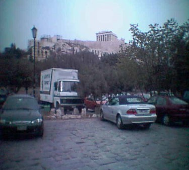 美穂ちゃんにNavigatorを頼みながら出発美穂ちゃんにNavigatorを頼みながら出発をすることにした。 ここに来るのに大変道路に迷いながら苦労したが、とりあえずわれわれが来た道を戻ることにして、地図を頼りにしながら次の博物館に車を走らせていった。 アテネの市街は、やはり車の渋滞が甚だしい。 そこかしこに渋滞が信号でおこっていた。 何とか、このを渋滞の中を博物館まで車を運ぶことができたが、博物館のところによって来て、はたと困った。 博物館の駐車場を持っていないのである。 街のど真ん中にある博物館なので、車の流れが激しく道路に車を止めるわけにもいかない。 博物館の周囲に沿って、道を車を走らせていくと、東側と西側の道だろうか、道路の路側帯が有料駐車場になっていた。 すべて車が駐車をしており、われわれが車を止めるすき間は全くなかった。 時計の時刻を見ると、すでに時刻は4時近くなっており、博物館を見学する時間がだんだん少なくなってきていた。 気が気ではない。 ごろごろ博物館の回りを回っていると、ふと民間の有料駐車場のスペースが視野に入ってきた。 |
