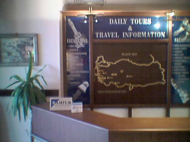 Hilton Izmir ホテルのロビー、チェックアウトする際に気がついた観光ツアーの案内表示