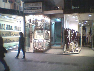 シンタグマ広場からエルムー通りを通って夕食へ出発タクシーの運転手に行き先のホテルの名前を言うと、運転手がアテネでも特別料金の高いホテルですねといったことが非常に印象的であった。われわれがタクシーでホテルに到着した、ちょうど同じ時間帯にショッピングで帰ってきた大野さん1行の女性3人組にホテルのフロントロビーで偶然顔を合わせることになった。 このため、これから一緒に町に食事に出ましょうということになってさっそく食事に出ることになった。 われわれが宿泊していたホテルはちょうど町の中心部に位置したためにこの中心部からショッピングストリートが何本も伸びている。 誠にショッピングには好都合な位置であった。 シンタグマ広場とオモニア広場を結ぶスタディウ通りとパネピスティミュ通りには、美術工芸品の店や宝石店などの店が軒を連ねていた。 またシンタグマ広場からモナステラキ広場に向かってのエルムー通りには、ファッションブティックの店が軒を連ねていた。 |