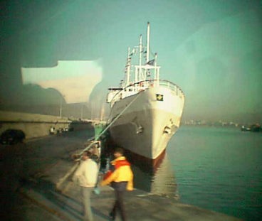 パレオ・ファリロ港サルニコス湾一日クルーズ船乗船1通りホテルを回ると、やっとバスは郊外に向けて出発をしてくれた。 船の出発時間8時半ぐらいに、アテネの港にバスが到着した。 すでにクルージング船の回りには大型バスが何台も止まって乗客を乗せ始めていた。 止まっている大型バスの数をみるとかなりの人数がこのクルージング船に乗るようであった。 乗船するときに日本人の客と外国人の客種類に分けて乗客席に案内された。 ギリシャの民族衣装を着た男女2人に記念写真を撮って迎えられた。 われわれ日本人は、船の後尾にある1階の船室に案内された。 ここには日本人の団体観光ツアー客がたくさんすでに乗船していた。 こんなに日本人が観光に来ていたのかと思うほどたくさんな人数であった。 これらのお客さんは、すべて日本旅行とか近畿ツーリストとかいう大手の旅行会社の団体観光ツアーであった。 |