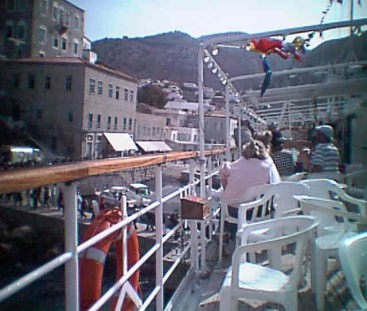 ![]() 2番目の寄港地イドラ島に接岸 |