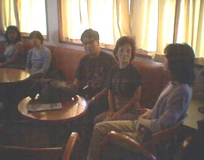 ![]() ギリシャ民族舞踊を鑑賞する鶴井さん、大野さん |