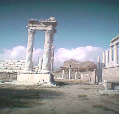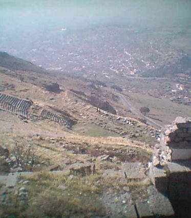 ヘレニズム文化遺産ーアレキサンダー大王の遺産を受け継いだ王国の首都ベルガマBERGAMA (PERGAMUM)遺跡このベルガモ遺跡はヘレニズム文化の集大成をしたした芸術や学問の中心、アクロポリスから構成されている。 アクロポリス(無休、8:30ー17:00、100万TL)上市ー中市ー下市の3つの部分からなっている。 主なものに、 アテナ神殿;ヘレニズム芸術の最高傑作、瀕死のガリア人 図書館; エジプトのアレキサンドリア図書館に対抗、20万巻 大劇場、 トラヤヌス神殿 ゼウス大祭壇;神々と巨人たちの戦い、ヘレニズムを代表す る浮き彫り アスクプレピオン(無休、8:30ー17:30、100万TL) 古代の総合医療センター |