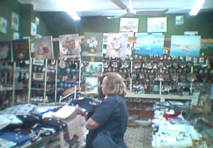 ![]() エギナ島の港の1角に道路に面して作られているショッピングス トリートのみやげ物店 |