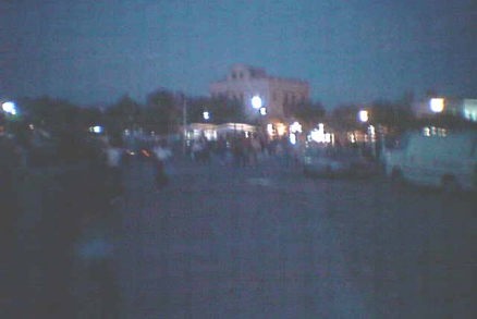 ![]() 港の1角に道路に面して作られているショッピングストリートの入り口に バスが止まって、バスから全員降ろされた。 |
