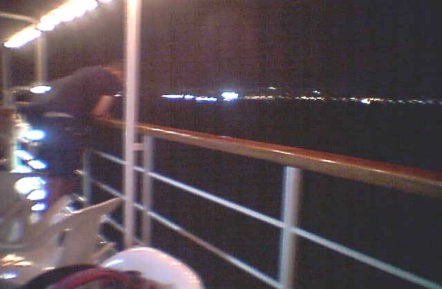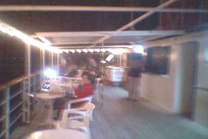 ![]() たくさんのお客さんが甲板の上の椅子に座ってい夜景を風に吹かれながら 楽しんでいた。 |