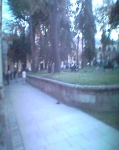 宮殿の門を通り過ぎると中庭に入り、まっすぐ突き当たったところが目的のトプカプ宮殿で、左がきの通路を行くとアレキサンダー大王の石棺で有名な考古博物館に行きつくことができる。