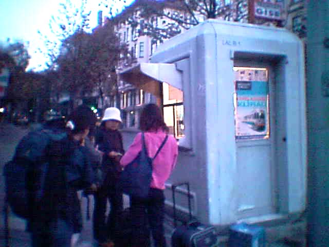 ![]() 市内電車の切符売り場の前でよく見ると、この朝早いのに、日本人の若い女の子3人が |