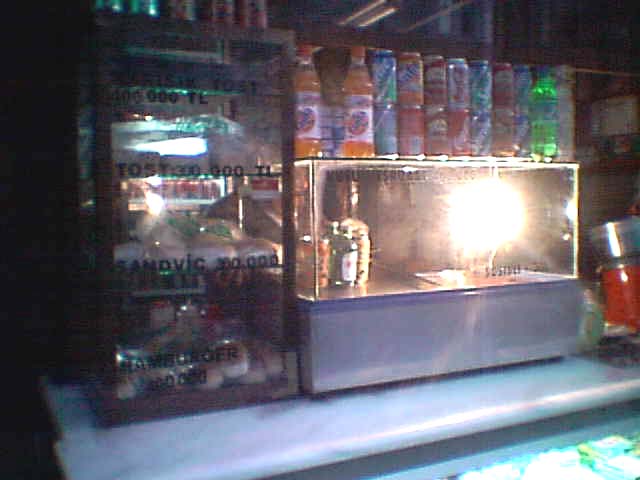 ![]() 缶ジュース、パンなど朝食を販売している店に出くわす。 |
