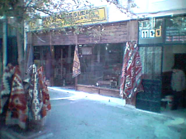 バスからわれわれが降りると、トルコ語コース、英語コースに別れて案内をバスからわれわれが降りると、この人を案内してくれるガイドはまた別の人が案内してくれるらしい。 というよりもトルコ語コース、英語コース、フランス語コース等々いろいろな言語によってコースがあり、それぞれにその言葉を話すガイドが観光客を連れて、この人を案内するようになっていた。 残念ながら日本語コースはなかったために、われわれは英語コースのグループに入って説明を聞くことになった。 まだまだトルコでは日本語はマイナーな存在のようである。 結構日本人の観光客は多いようであったが、このように市内観光の説明に日本語コースがないということはやはりマイナーと言わざるを得ない。 バスから降りて回りを見てみると土産物店がずらりと並んでいた。 この写真に写っているのもその内の1つの店舗である。 |