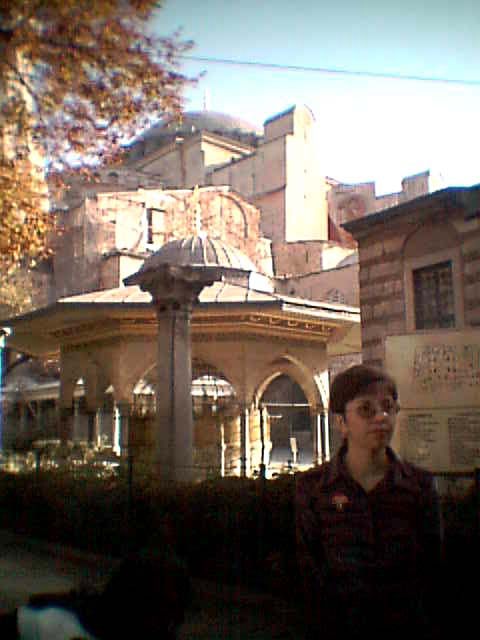 ![]() 旧市街を車は走っていたが,やがて有名なアヤソフィア寺院に到着した。 |