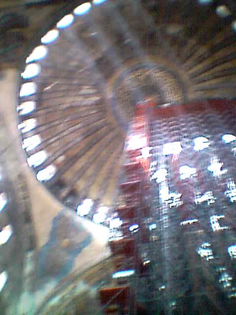 ![]() 南北約33M、東西約31Mの巨大な楕円形のドーム天井にモザイクが惜しみなくかかれている。 |