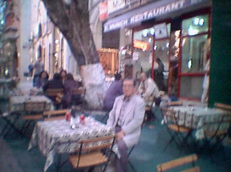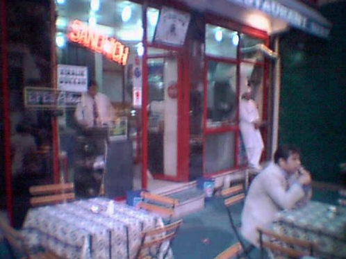 写真を見るとわかる通り,西田さんがほっとして路上に出された食卓の椅子に座っている。昼食をとって腹こしらえができてほっとしたといったところである。 ショッピングで歩き回っていささか足が引き吊っていたところであるが、ここで食事をすることによってちょうどいい休息をとることができた。 このようにトルコでは路上に平然と机やイスを並べて店の中でまかないきれない客を路上でさばききっているわけである。 後ろにある大きな木は根元が被害を防止するために木を守るために白いものでまかれていた。 このレストランは完全にアメリカナイズされており、コカ・コーラとかファンタとかアメリカの飲料用水がサンドイッチとともに販売されていた。 ここはちょうどグランドバザールの入り口にあたる通路部分の非常に場所としては最高の位置にあったために、店内はひっきりなしにお客さんが次々ときて、テイクアウエーの昼食を購入して帰って行っていた。 このレストランの店の前のテーブルに座っているとグランドバザールで買い物を終えた、トルコ人が両手にいっぱい品物を抱えて帰っていく姿が見えたり、これからショッピングに向かう若い男女のなどさまざまな人生模様の姿を見ることができた。 |
