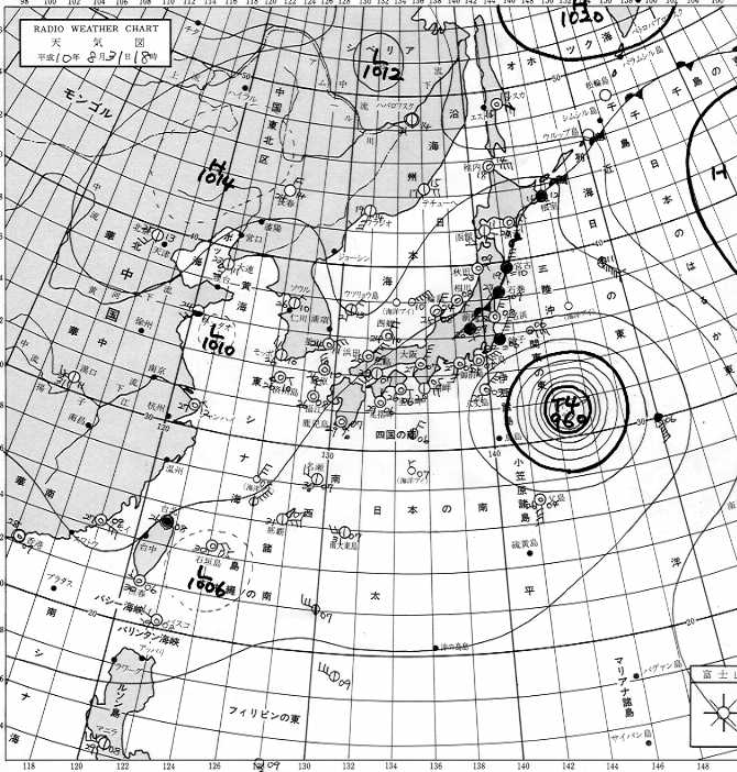 それが、大きく渦巻くと熱帯性低気圧となる。そのなかで、中心付近の最大風速が17m/s以上になった低気圧を台風と言う