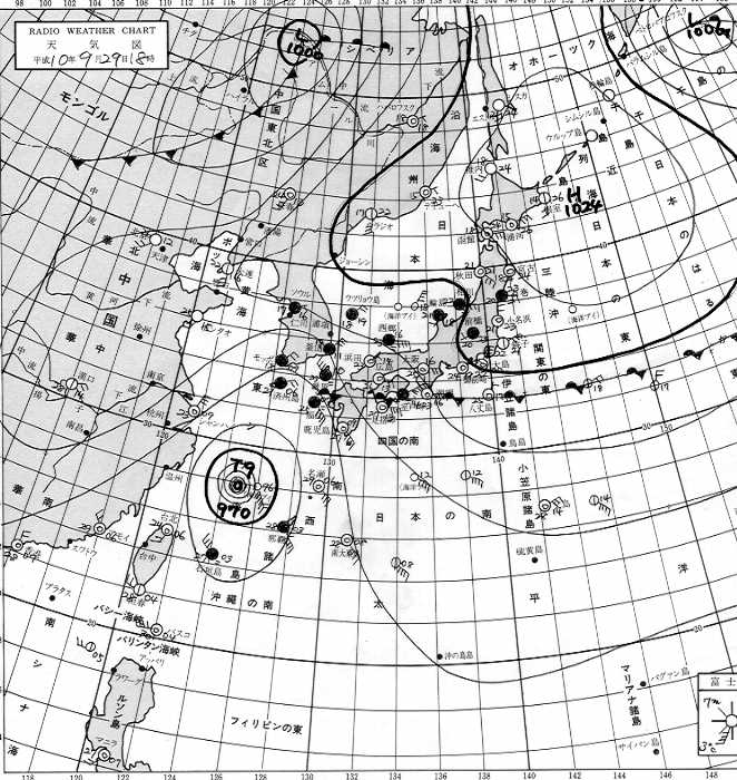 秋雨前線(停滞前線と移動性高気圧と台風/典型的秋型天気図)