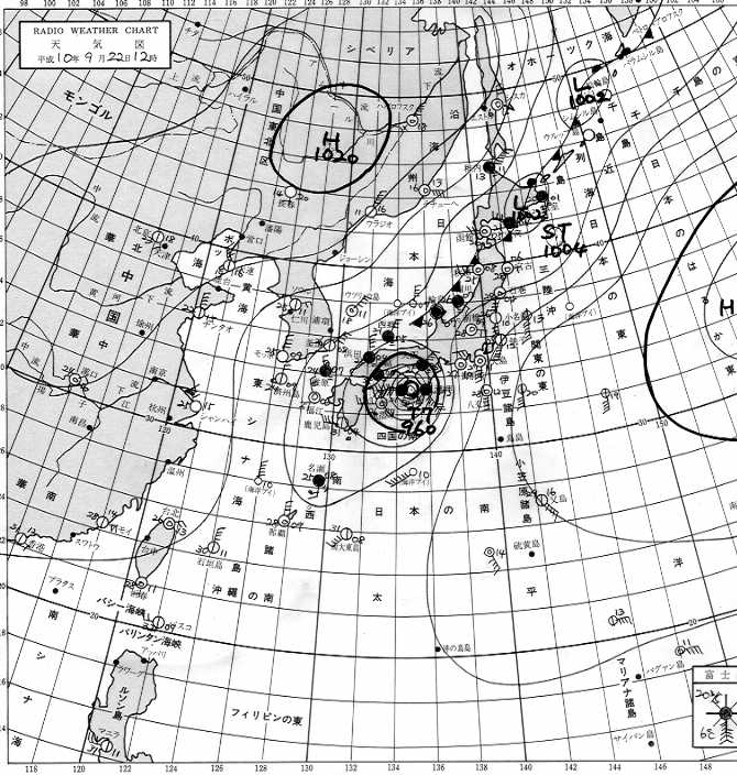 そして、台風が運んできた暖気と周りの寒気がぶつかり前線が発生して、温帯低気圧に進化する