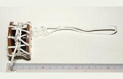 材料:木材(ラワン)透明ニス仕上げ 江戸打ち紐、胴は茶色 サイズ:直径36mm、厚さ20mm