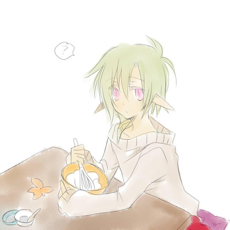寒いので炬燵で菓子作りの図