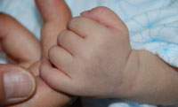 必死に母の言動に注目しているのだと思った。 破水後30分で出産し、無事に赤ん坊が出てきた。頭が出るまでは、 かなり大変だったが、頭が出てしまった後の体はつるっと出てきて驚いた。 へその緒は、太くて白くホースと言った方がいいくらいしっかりしていて、 助産師さんが必死に切ろうとしていたがなかなか切ることができず、 医師から早く切るように催促されていた。こんなホースでつながれ栄養を 摂っていたのに、生まれた瞬間からは、栄養を口から摂るようになって しまうというのが本当に不思議だった。 身長49cm、体重3220g。長男が生まれたときよりちょっと身長が低く ちょっと体重は重かった。久しぶりに生まれたての赤ん坊を初めて抱くことが できた。とても小さく、脚は筋肉がなくとても細く頼りない生き物だと思った。 |