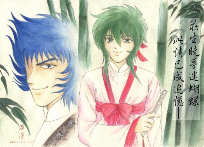 5000カウント記念で逆プレゼントされました。 民族衣装(だよね?)をまとった瞬がすごくきれい。兄さんも格好良い! 色使いがとっても素敵なイラストでうっとりしてしまいました。 ところで右の文章は何て書いてあるんだろう?気になるっす。