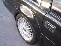 Case2 [後期300系風ワイドボディ化] マイナーチェンジで登場した(正確には50アニバーサリーモデルが最初だが)ワイドボディは、非常に魅力的なスタイリングである。車幅的には僅かな差なのだが、その迫力はナローボディとは大きく異なる。ここではお手軽にワイドボディ化する方法から、ワイド化した場合のエアロパーツ選びのポイントを紹介したい。 ワイドボディの「肝」とも言えるフロントフェンダーは後期300系の物が問題なく装着できる。このとき、フェンダー内側の「どろよけ」も同時に交換すると良い。新品は片側6万円オーバーと非常に高価なので、中古を使用するのがベストだが、300系の解体車は滅多にないので、ネット上の解体車情報やオークション等をまめにチェックするしかない。また、ウエストヨコハマ社からはFRP製のものも発売されているが、強度的にもお勧めできない。当然ながらフロントスポイラーは300系のものを装着することになる。 リアフェンダーはフロントフェンダーの様に簡単には移植できない。そっくりそのまま300系ボディを再現しようとすれば、リアのクオーターパネル付近に大幅な溶接等が必要となり、当然費用も膨大なものとなる。手頃な価格でワイド化したいのならば、リアはいわゆるアニバーサリータイプのオーバーフェンダーで済ませるのがベタ−か。これなら数万円の出費で済む。このオーバーフェンダーもウエストヨコハマで購入が可能。 ワイドボディ化した場合、当然200ZR用のサイドステップを装着するには加工が必要になってくる。それならば300系の物を装着すれば良いと思だろうが、リアにオーバーフェンダーを装着した場合、やはりリア部分に多少加工が必要になる。一番簡単なのはアニバーサリータイプのオーバーフェンダー&サイドステップをセットで購入、装着する方法。これならば確実。あとはデザインの好みになるが・・・ 注:フェンダーをワイドタイプに変更した場合、当然ながらホイールのオフセットを変更する必要がある。(そのままでも走行は可能だが、見た目が悪い)そのままのホイールを使用する場合は、20mm程度のスペーサーを入れればほぼジャストサイズ。ただし、リアにオーバーフェンダーを装着する場合は、既存のフェンダーの爪折り加工が必要になる。