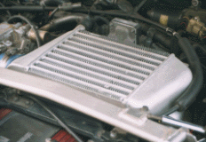 (2)HKS社からリリースされている前置きインタークーラーキットは、本体・パイピング・ステー・ブローオフバルブがセットになっている。フェンダーへの穴開け加工等が少々困難だが、基本的には完全ボルトオンなので気軽に前置きにするにはもってこい。ただし、パイピングの複雑化によってレスポンスは悪化する。