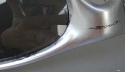 で、落としちゃったから買おうと思ってたところだったし。バイク乗るときに常用しそうです。ただ、やっぱり塗りだからハゲてるところがあるのと、レンズがちょっと甘い(当然)。このoakleyロゴも、どうも少し変な感じ。