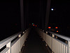 さて、街道からはずれた又五郎は、国道371号線を北へ向かってすすむ。途中はずっとなだらかな上り斜面が続く。車で移動する時はさほど感じなかったのだが、371号線から紀見峠の登り口までいくまでが思ったより長かった!何気にずーと上り坂が結構疲れる・・・そうこうしている間に、紀見トンネル前の歩道橋にだどりついた。 ここまで来ると流石に風景が寂しい。前には大きくオレンジ色の口をあけた紀見トンネルが見える。近くに民家も数軒見えるが、店らしきものはないので明かりもすくない。横(国道317号線)をはしる車の台数だけはまだ多いので賑やかではあるが、車以外に人通りは無い。トンネルを囲むように暗闇に不気味にうっすらと輪郭を写した山肌が見える。 歩道に上がった。一息つく。 つけられたオレンジ色の光が妖しげだ。