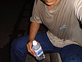 ■AM1:30 (出発から6時間)美加の台の駅ついに大坂平野が見えてきた! 下の地図でいうと、ちょうど山の部分(肌色)の切れ目の所である。結局、遊歩道は途中なぜか通行止めになっていて、ふたたび国道へもどり、歩道ある部分もない部分も含め数キロを歩いた。結構ひやひやしたが大事なく、むしろ横を通過した車のほうがびっくりしてたんじゃないかな。 ここまで来るとほっとしたのと同時に、なんとなく疲れ(特に足)がまた襲ってきたので、本格的に一息入れる事にした。ちょうど駅前が大きなバスターミナルだったので、バス停のベンチにひっくりかえって横になる。なんどかタクの運ちゃんが寄ってきて、乗らないのかー的視線を送っていたが、こちとらこれから歩いて大坂城を目指す身だ。他をあたってくれ。<他には誰もいないけど(笑) ←死亡中の又五郎(笑)ところがここで事件が起きる。 寝過ごさないよう薄い眠りに入りながら、しばらく横たわっていると・・・ ・・・あれ?・・・おかしいぞ。急に強烈な寒気が襲ってきた。 この時季、確かに夜の山間部とはいえ、かなり蒸し暑い。現にいままではTシャツ一枚で十分であり、それでも滝のように汗が流れてきたのだ。しかし・・・確かに寒い。しかも強烈な寒さだ。寒さ?悪寒?唇が震えて歯がなりだした。なんだ?なんかやばいかもしんない。念のため持っていた厚手のシャツを着る。それでも震えが止まらない。ついに全身震えだした。 「やばい。ここで行き倒れになったら恥ずい(笑)」 とりあえず、とっさにここで止まっていてはやばいという判断に達した。動いていれば、また暑くなってくるはずだ。とにかく動こう。ということで、 ■AM3:00 (出発から7時間半)美加の台を出発する 歩きながら、ふとある事に思い至る。 「そうだ!俺は大量に汗をかいたから、軽い脱水症状におちいっているかも。なら・・・塩だ!なんだかわからんけど、とりあえず塩を補給することだ!」 人間やばいときは、突拍子もないことを考えるものである(笑)。