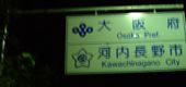 何にも出てくるなよ〜〜〜 と祈りつつ(笑)、懐中電灯を振り回し、靴音をわざと大きく鳴らして・・・忍びらしからぬ行動( ̄ロ ̄!おかげで、この峠越え全行程やく40分で無事切り抜けられましたとさ。 ■PM11:30 (出発から4時間)旧国道からふたたび371号線に合流 峠を下るとそこには「大坂/河内長野市」の看板が・・。 「おおっ!ついに大坂だ・・・」不安だった峠を抜け、和歌山から大坂へ。 まだまだ山中には変わりないが、とりあえず大きく前進した気分。ここまで4時間。実に快調なペースでは? ![]() とりあえず休憩する又五郎。 もうこの時点で、汗ぐっしょりで、Tシャツの乾く暇もない。 横を見ると、国道371号線にはまだ車の量も多い。 この少し先の信号機までこの国道を行くことになるのだが、そこまでは歩道があるので大丈夫。信号を右折し坂を下っていくと、小さな村がありその先に遊歩道がある。この遊歩道は、先日下調べの時に「国道は歩道が切れるところが一番危ないなぁ・・どっか国道以外に道がないかな」と探していた時、偶然発見したのである。村の人に尋ねると、遊歩道は旧南海線の線路跡らしい。結構先まで行けるらしいのだが、どこまで続いてるのか聞けなかったので分からない。でもこの山間を371号線と平行にはしっていそうなので、いちかばちか遊歩道で行けるとこまで行くことに決めていた。 ![]() ![]() 遊歩道は山裾を通っており、相変わらず暗かった(笑) しかし視界は開けており、向こうに平行に走る国道371号線も見える。外灯もあり、あの峠を越えてきたものにとっては、楽勝の道である(笑) ■AM0:30 (出発から5時間)千早口の駅 ![]()