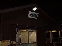 遊歩道はところどころで南海の駅と交わっており、終電の去った天見駅は無人だった。出発してから5時間、ここまでノンストップで歩いて25キロはきただろうか。そろそろちょっと疲れてきたので千早口駅前の階段で缶ジュースを飲んで休んでいると、すぐ前の民家の人が出てきて、こんな時間にリュック背負った妖しげな人が終電の去った駅に座っている光景を訝しげに見ていた。ははは。 しかしとにかく歩きつづけるしかないのだ。目標では、夜が明けるまでに山間部を脱したい。 そこまでくれば、浅野の軍勢も追ってはこないだろう(笑)