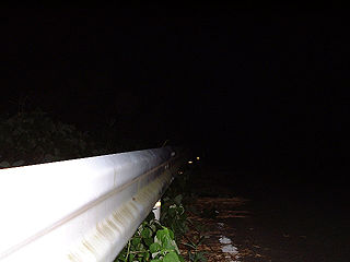 さて・・・とりあえず飯(晩飯代わり)におむすびを食べることにした。 「ここからがいよいよだな・・・」 歩道橋の階段に座り飯をほおばりながら、これからの峠越えに思いをめぐらす。 ここで簡単に説明すると、この紀見峠、一昔前までは国道が山沿いに作られ、山を越えるかたちの道がメインの371号線であった(推測)。しかし、最近紀見トンネルができてからは、トンネル一直線で山向こうに抜けられるようになっている。で、このトンネルである。一応トンネル内には歩道が設けられているので、歩く事はできるのだが・・・ イマナラマダトンネルヲセンタクスルコトハデキルケド・・・ 迷いが出た。というのも、この旧371号、前に車で下見したのだが、結構コワイのだ(笑)もちろん昼間は木々に囲まれた山道なのだが、調べたところでは外灯は無かったので多分真っ暗。途中猪とかでたらいやだな・・ なんて一瞬思ったりもしたわけだけど、やっぱり紀見峠「越え」なのであって、紀見峠「くぐり」ではない(笑) ここで、とある真田草のものTさんに電話。 「峠を前にして急に誰かの声が聞きたくなったので、電話しました」 忍びの習性として「任務は極秘にすみやかに」なのに、俺はまだまだ甘いちゃんだよなぁ(笑) 夜の信濃の山中を一人で一晩中走り回るお江はやっぱりすごいや・・・