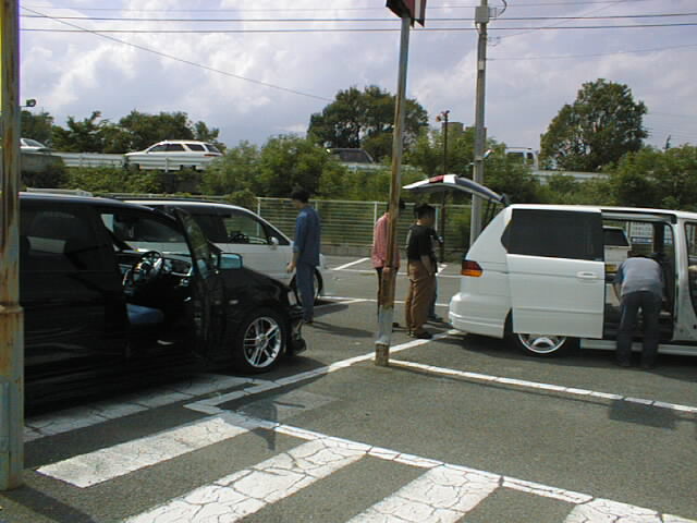 この日はODYSSEIAの全国ミーティングがあったのですが、先にATLANTISさんから誘われていたこともありあっしは山梨に向かいました。当日9:30に甲府昭和ICにて待ち合わせだったのですがあっしは朝4:30には家を出て道路が空いていたせいもあり6:00っごろ現地に到着してしましました(はやっ(笑))前日、当日の朝は雨模様だったので洗車も出来ず到着したので朝からICの出口で他の車が通る中洗車をしました(笑)このために「フクピカ」とおいしいお水のペットボトルを用意しておいてよかった〜♪集合前にはピッカピカにしてやる〜と意気込んで洗車してました(笑)一人で(笑)集合時間1時間前ッ頃でしょうか?だchanが到着♪一緒に洗車してました(笑)そして9時頃北原さん到着♪洗車場に連れて行ってくれる予定でしたがあっしもだchanもその場で洗車してしまったのでゴメンナサイ(笑)9:30頃みんな合流!一路BM甲府店へ向かいました。向かう道の中オデッセイが何台も通るので注目の的でしたよ♪