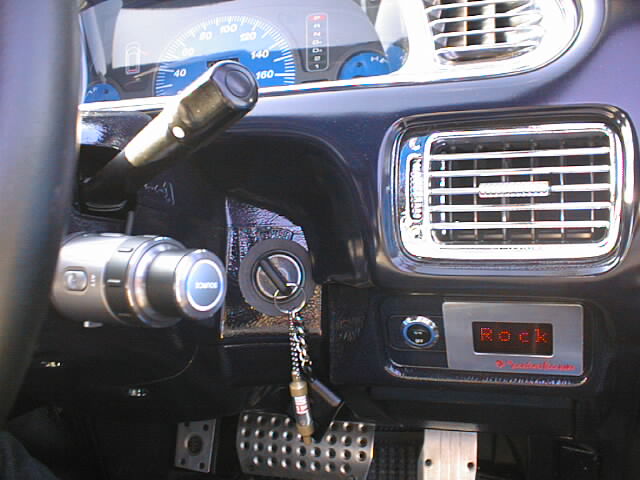 ロックフォードの電圧メーターです。その横にあるのはスポットライトのスイッチです。