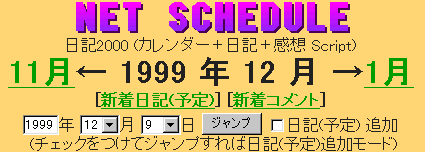 | 日記(予定) 書き込み 年 月 日 タイトル(必須) 内容(必須) リンク http://〜 記入者(必須) 削除パスワード(必須) 期間 日間 時間 ※ 必須項目が欠けると記入できません |
