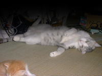 手前に見える掃除機がなぜかお気に入り。 ケージから出して遊んで疲れたら掃除機のそばで寝るのが好き。 大体ネコって掃除機の音を嫌がるんだけど・・・。 その為に我が家では掃除機を「(優の)ママ」と命名(笑) |