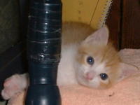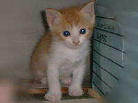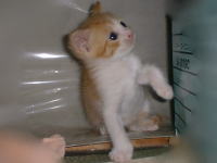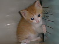 このこねこのこ 2002.08.01.午後起きたら、母&妹が「隣の空家で朝から仔猫が鳴いている」と言うので様子を見に行くと、 |