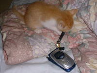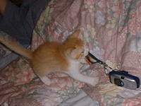 携帯のストラップが大好き。 ズルズル引きずって、じゃれたりかじったり。 |