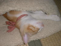 | 生後3ヶ月〜6ヶ月 3ヶ月〜4ヶ月で3種混合ワクチン接種して一安心。 1月には早くも「繁殖期」を迎え、 それが済んで生後6ヶ月で避妊手術しました。 2晩入院したんですが、 何にも食べなかったそうで、ぐったりして帰って来て心配しました。 でも2日ほどで元気に回復・・・良かったね(^^ゞ |