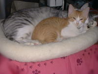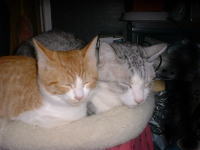 「かじりごっこ」(?)の相手でいつも迷惑なトムですが、 寝る時は一緒だったり。 |
