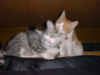 トムと仲良く寝ていたんですが、 カメラ向けたら起きてしまい、 眠そうな顔でこちらを見ています。 |