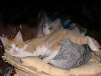 でも時々トムが乱入して「噛み噛み攻撃」するので目が離せません。 もちろんトム自身は一緒に遊んでるだけで敵意は無いのだが・・・。 |
