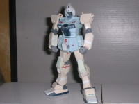今から15年ほど前、あのガンダムセンチネル終了後、 メカデザイナー・カトキハジメが発表したリファイン版ガンダムです。 アニメ版ガンダムに比べてスリム体系でリアルなディティールでカッコイイ! 当時のモデルグラフィック誌の作例記事みてタメ息だった人も多いハズ・・・? 「MG(マスターグレード)ジム改」が発売され、 当然作るでしょ・・・と、夏頃から製作開始したんですが、 ぬわんと12月に「MGガンダムVer.Ka」発売決定しちゃいました・・・(死) 2ちゃんでは発売前からスタイルが設定画どおりになるかどうかで論議されてますが、 今までのMGが「太めガッチリ体系(インナーフレームの為)」なので悲観している人が多いようです。 さて、どうなりますか・・? んで、オレは設定画が手元に無いんで雑誌やネット上の画像など参考にしつつ「カトキ”風”」ということで製作。 「電撃ホビーマガジン8月号」の作例を参考に、よりスマート体系になるようにしてます。 ジム改ベースに胴、肩関節、足の付け根の環節はジムカスタム、頭はガンダムです。 |