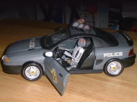 んで、このまんまじゃつまらんので、 「ロボット」ということでロボコップの「デトロイト市警パトカー」に搭乗させてみました。 ・・・マヌケですね(笑) |