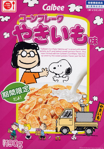 | カルビーの2005年9月度新製品「コーンフレークやきいも」であります。発売を全く知らず偶然出土しました。2006年3月までの限定販売の模様です。味ですが、なんだがブラウンシュガーに異物を混ぜただけのような変わり映えしない内容にガッカリです。時折白いパフが入っており、これに焼き芋の味付けがなされているようです。同社のキャラメルは結構美味しかったのでヤヤ残念。しかし日本製品は内容量が少ないです、190gだと半日で食べ尽くしそうです。 |