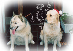 うちの愛犬モモ(右)X'mas仕様。背後の物体が因幡。