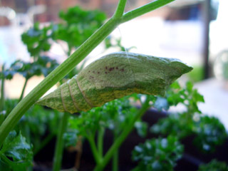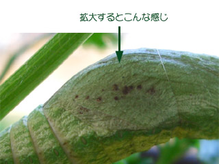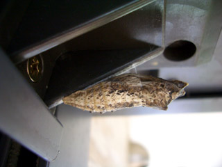 | 8月13日 (蛹化翌日) 蛹に変身してじ〜っと羽化の時を待ってます〜 特に変化なし〜っ |