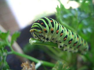 8月13日 ミンティちゃん、ミンツくんが蛹になったあともパセリ苗で元気にぱりぱりいうて食ってたんよ。 ん〜 ぼちぼちかな〜と思いつつ盆につきおでかけ〜〜 んで夕方戻ってくるとよっ おらんし( ̄◇ ̄) ミンティちゃ〜〜〜〜〜〜〜〜〜〜んっ んでもミントくんの時の経験から考えて、も、蛹の準備のためにどこか良い場所を探しに家出したはず・・・ きっと近くにおるぜ〜と思って探していたら・・・ ( ̄◇ ̄)こんなところにおりました・・・ ![]() 見えますか????? ![]() パセリ苗を置いてあったウッドデッキの窓の上のほ〜〜〜〜にひっついてましたわ。。。。 前回の「ミンツくん座卓の足事件」の時とは違って、もうすっかり蛹になる準備をしてひっついてじ〜〜〜っとしてました。 なわけで、移動不可能(笑) ここで羽化を待ちます(笑) |