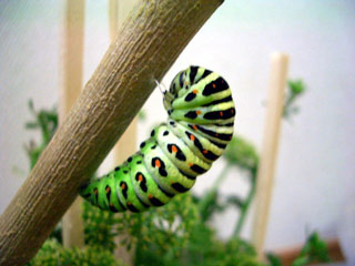 6月25日 6:15 んで、翌朝ですぅ〜 は・・・・ す、すごいわ・・・・ ちゃ〜んとひっつけた尾のところを支点にして、左右の糸をつっぱってぶら下がってるわ・・・・ か、感動ーーーーーーーーーーーーーーーーーーっ 上手にぶらさがってるもんやね・・・ 固まってるんかと思いきや・・・そっと息を吹きかけると、ぶるるって動くんよぉぉぉぉ はぁ・・・生きてる・・・いのちぃ〜〜〜〜〜 |